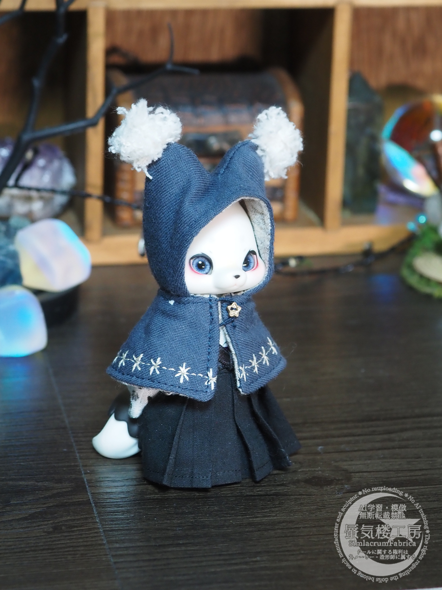 お耳に干渉しないスクエアフードのケープです。
